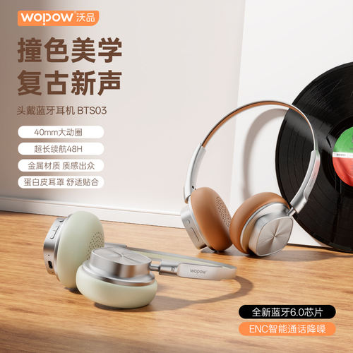 沃品 头戴降噪蓝牙耳机 BTS03 灰绿色