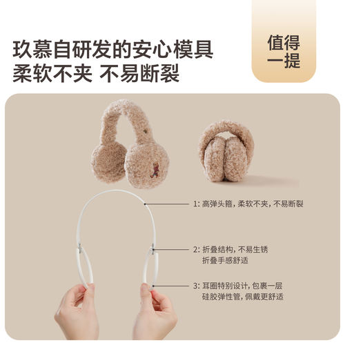 玖慕 毛绒耳罩女秋冬保暖防寒耳包刺绣耳捂子礼盒装RZ026 驼色小熊