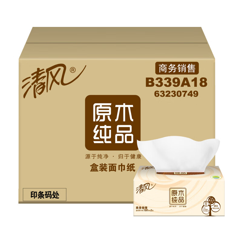 清风抽纸 擦手纸2层180抽*36盒L码 盒抽 餐巾纸 酒店商务商用 整箱