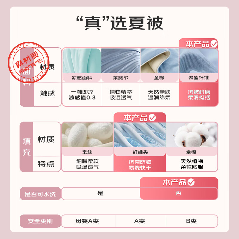 水星家纺被子空调被夏凉被抗菌七孔纤维被芯夏被子约1.9斤150*210cm粉