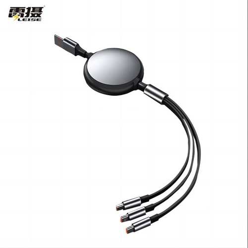 雷摄100W数据线三合一充电线6A快充一拖三伸缩线 黑色 LS-LGXPD01