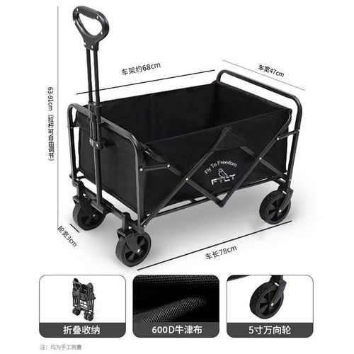 京东京造【后开扩容50%】越野宽轮户外露营车折叠推车拉车拖车装备沙石色