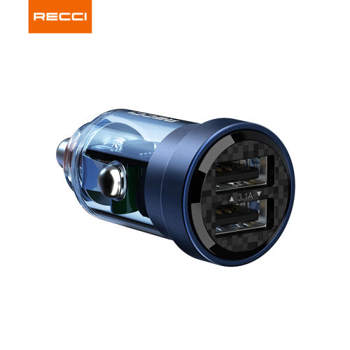 RCC-N16双USB口车载充电器15W车充支持12V-24V通用 透明蓝