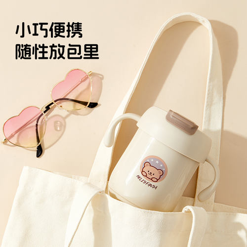 婴侍卫 316不锈钢儿童两用手柄水杯360ml 便携双饮杯防烫防摔吸管杯 A08891-C1 小熊