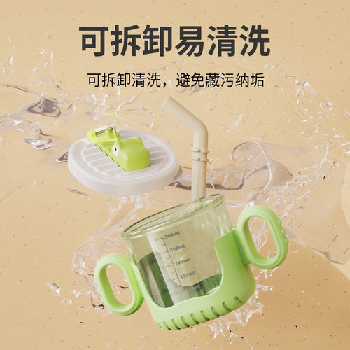 婴侍卫 儿童小鳄鱼吸管水杯300ml 刻度学饮杯 防摔耐热牛奶杯 R1927 紫色